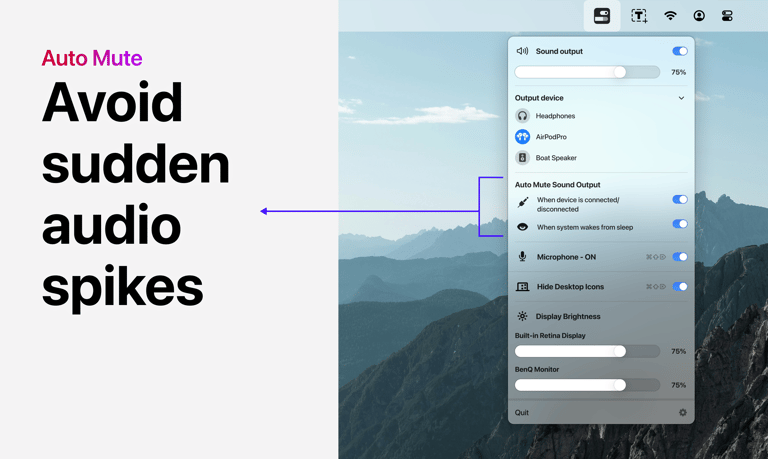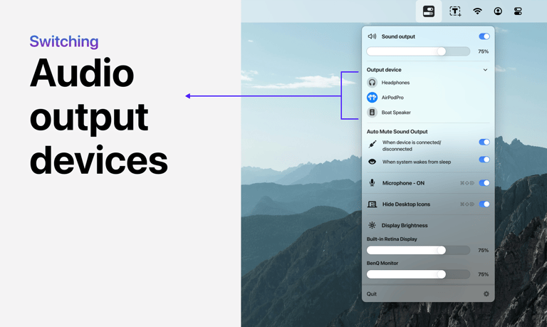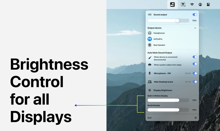 Adjust brightness on both your primary Mac display and any connected external monitors — even those macOS doesn't normally support.